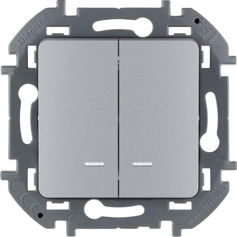 Выключатель 2-кл. Inspiria 10А IP20 250В 10AX с подсветкой/индикацией механизм алюм. Leg 673632