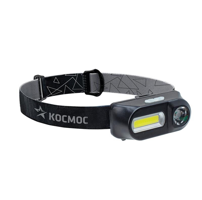 Фонарь аккумуляторный налобный XPE 3Вт + COB 3Вт сменный аккум. 1.2А.ч КОСМОС KocH3WDLith