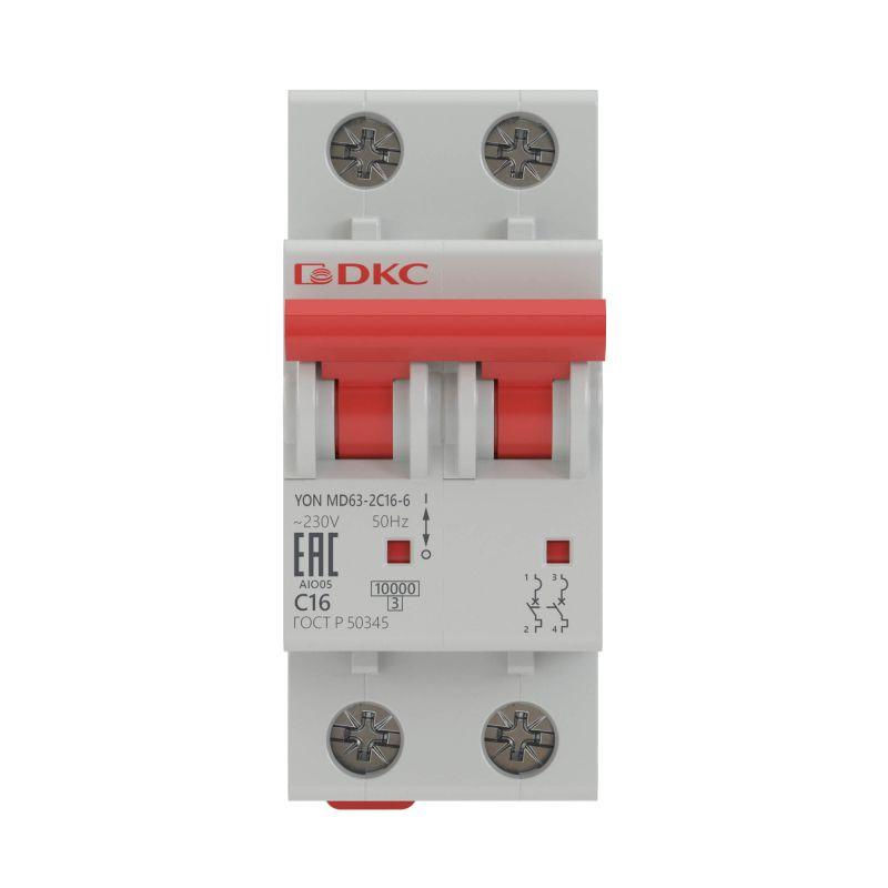 Выключатель автоматический модульный 2п C 6А 10кА YON MD63 DKC MD63-2C6-10