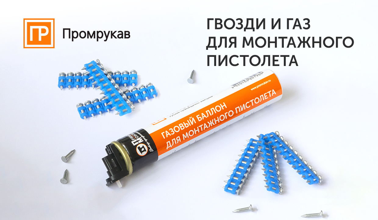 Всё необходимое для эффективной работы с газовыми гвоздезабивными инструментами – газовые баллоны и гвозди для прямого монтажа Промрукав.