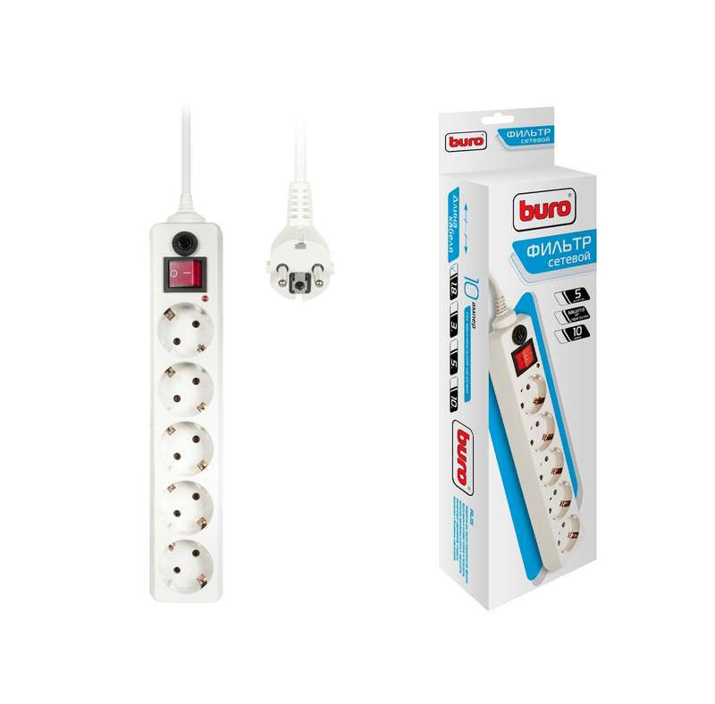 Удлинитель с сетевым фильтром 5х1.8м с заземл. 10А IP20 500SH-1.8-W 2.2кВт CCA бел. BURO 992284