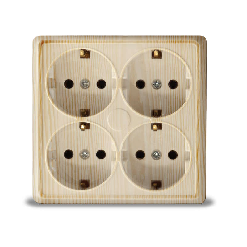 Розетка 4-м ОП Олимп с заземл. квадрат сосна UNIVersal 1177