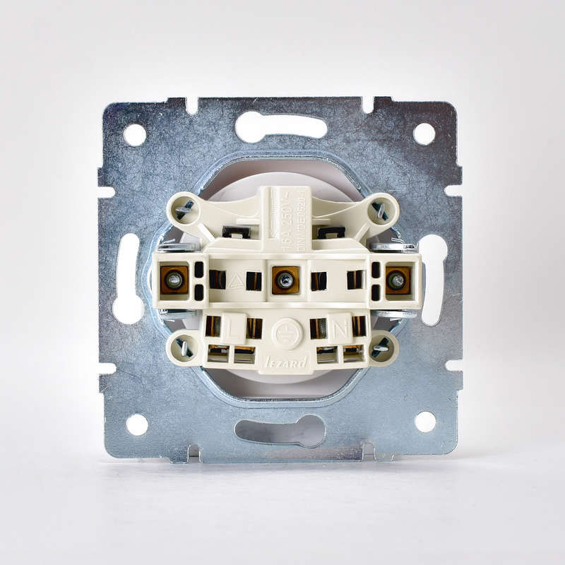 Механизм розетки 1-м СП Karina 16А IP20 без заземл. термопласт жемчуж./бел. перламутр. LEZARD 707-3088-121B