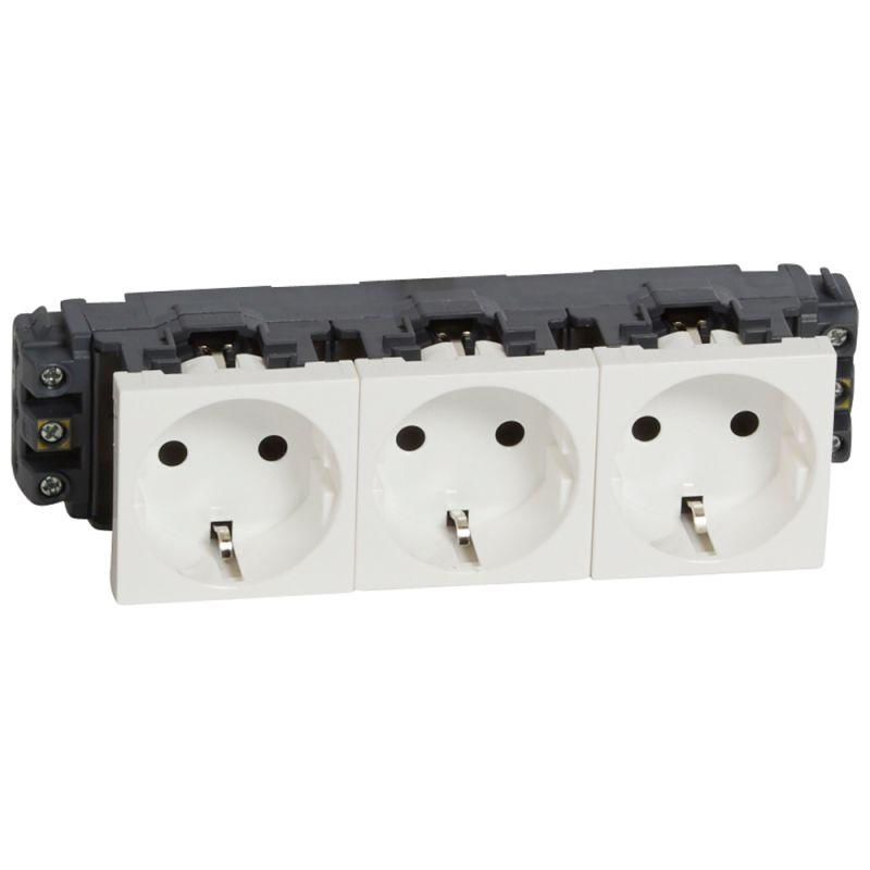 Механизм розетки 3-м СП 6мод. Mosaic 16А IP20 2P+E защ. шторки немецк. стандарт винт. клеммы бел. Leg 077603