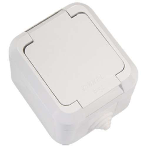 Розетка 1-м ОП 16А IP44 с заземл. с крышкой п/герм. бел. Makel 18304