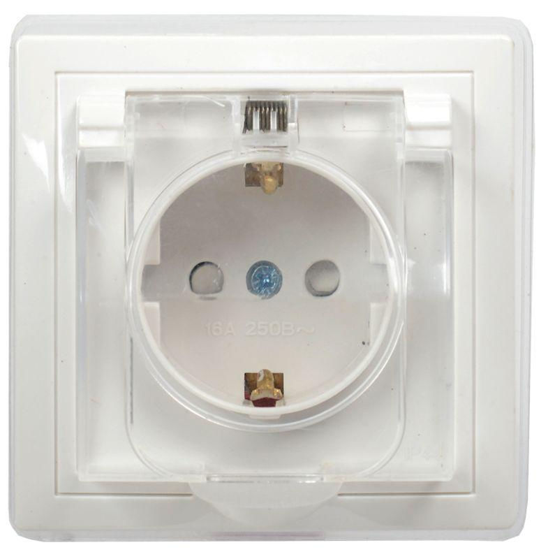 Розетка 1-м СП Кварта РСбш10-3-ККБ-44 16А IP44 с заземл. защ. шторки с крышкой керамика бел. IEK ERK70-K01-10-DM-44
