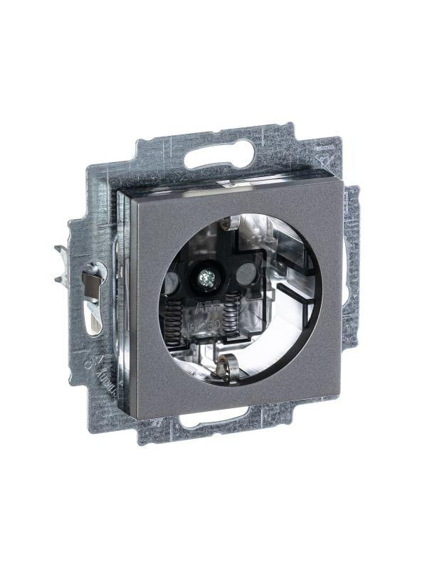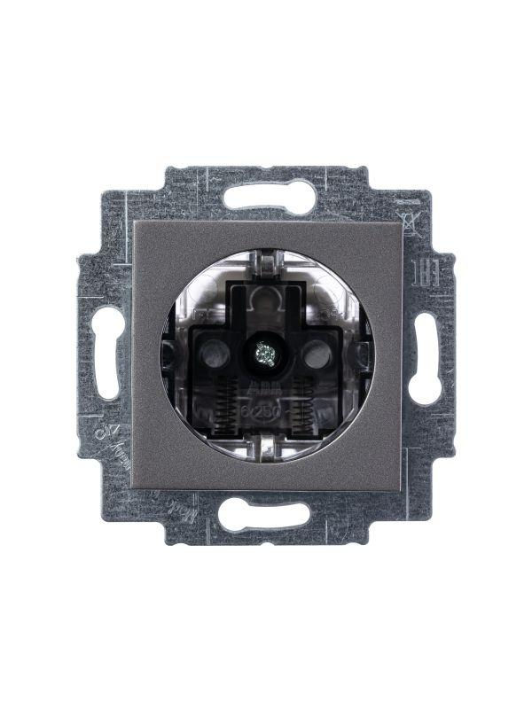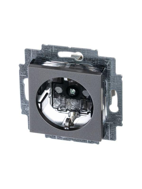 Розетка 1-м СП Levit 16А IP40 с заземл. защ. шторки сталь/дым. черн. ABB 2CHH203457A6069