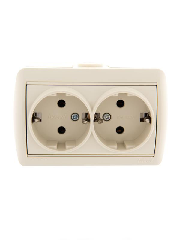 Розетка 2-м ОП Nata 16А IP20 с заземл. керамика крем. LEZARD 710-0300-127