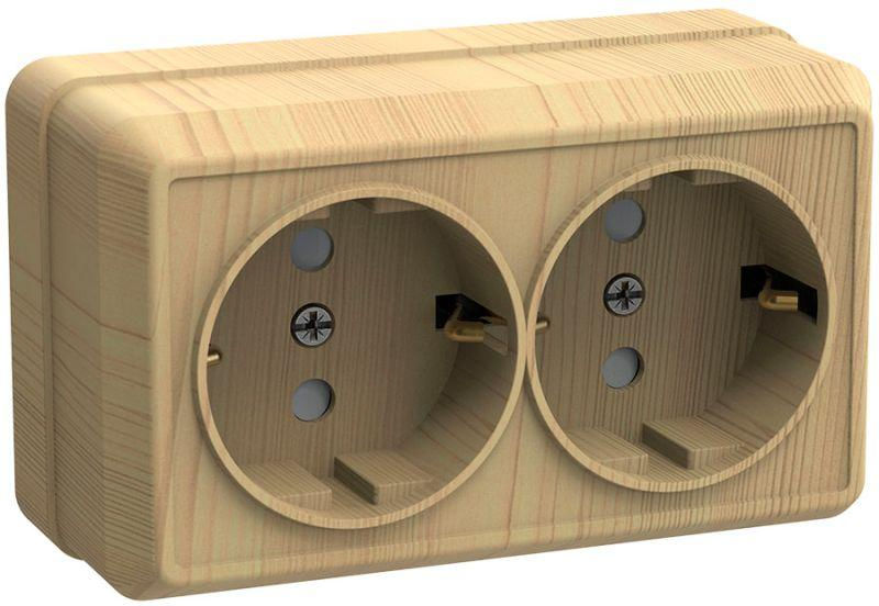 Розетка 2-м ОП Октава РС22-3-ОС 16А IP20 с заземл. сосна IEK ERO21-K03-16-DC