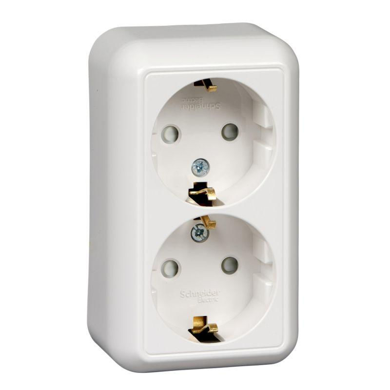 Розетка 2-м ОП Прима 16А IP20 250В с заземл. защ. шторки с монтаж. пластиной бел. (опт. упак.) SchE RA16-214M-B
