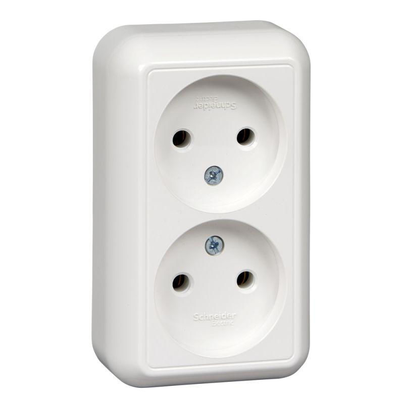 Розетка 2-м ОП Прима 16А IP20 без заземл. без защ. шторок (опт. упак.) бел. SchE RA16-213-B