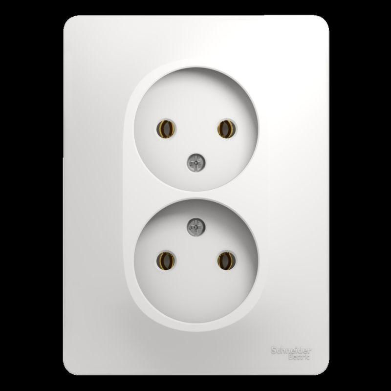 Розетка двойная Glossa (в сборе, цвет белый) без заземления и без шторок подходит для сетей 250 В, на ток 16 А.