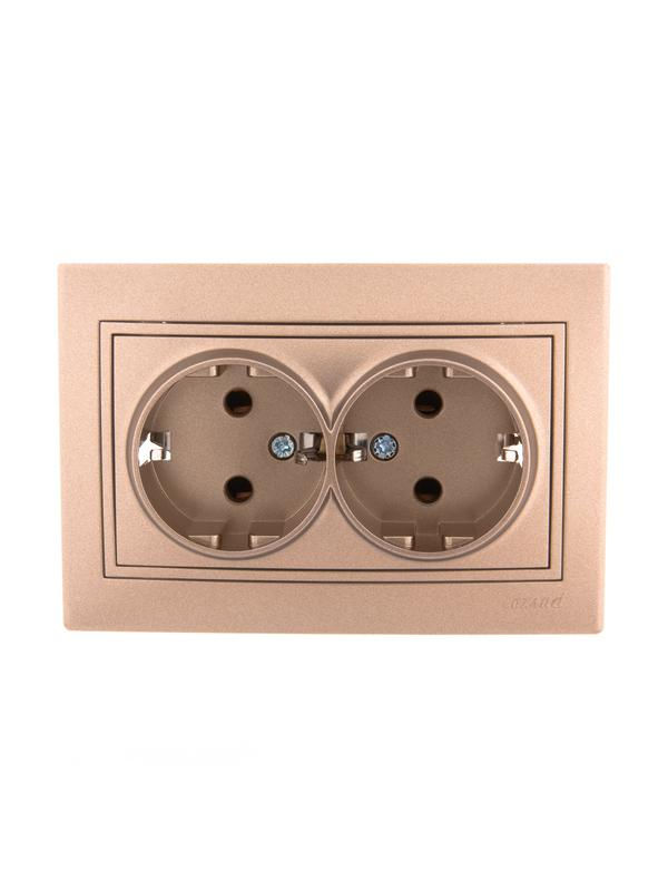 Розетка 2-м СП Mira 16А IP20 с заземл. со вставкой керамика свет. корич. перламутр. LEZARD 701-3131-127
