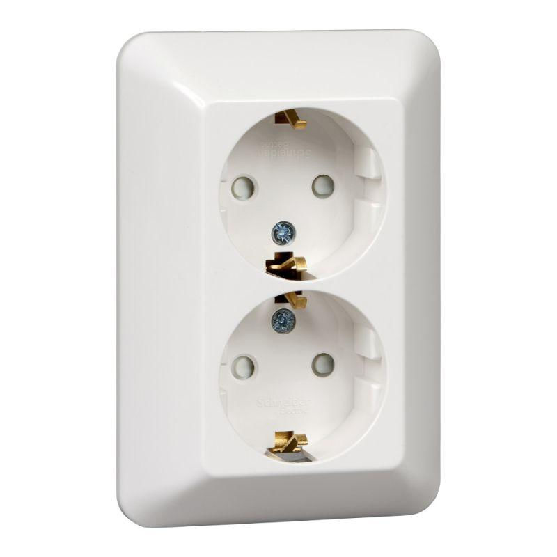 Розетка 2-м СП Прима 16А 250В защ. шторки с заземл. (опт. упак.) бел. SchE RS16-212-B