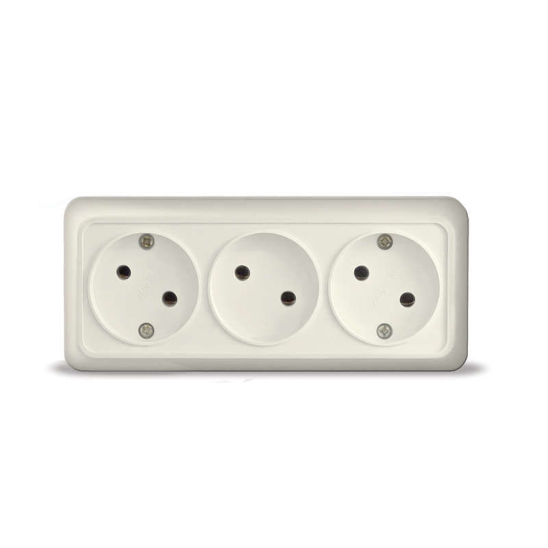 Розетка 3-м ОП Олимп 16А IP20 без заземл. сл. кость UNIVersal 1166
