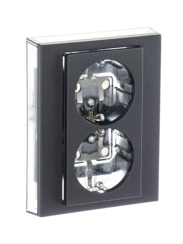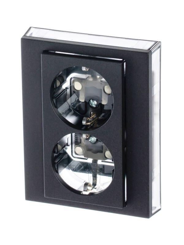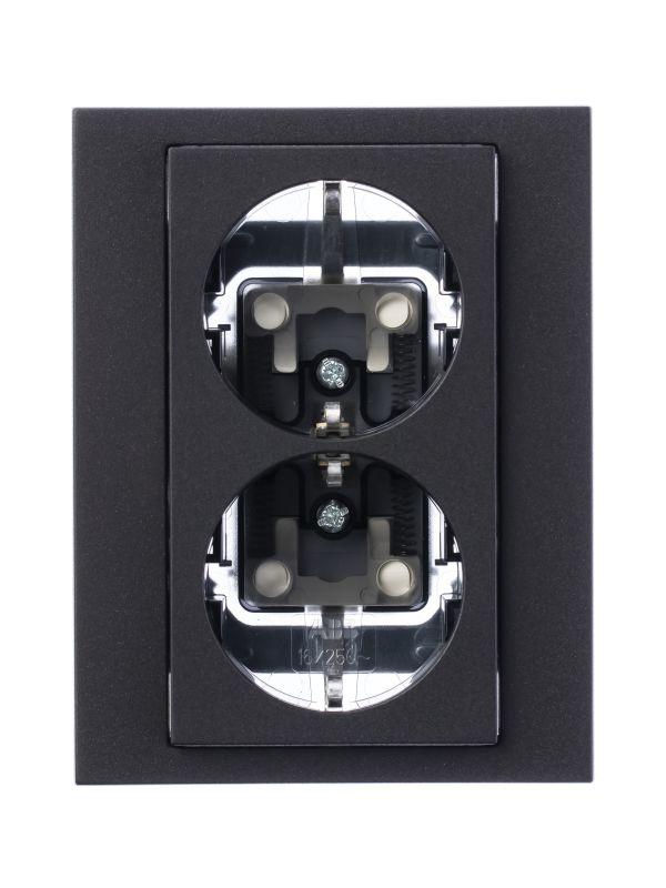 Розетка двойная Levit с заземл. с защ. шторками 16А антрацит/дым. черн. ABB 2CHH223457C6063