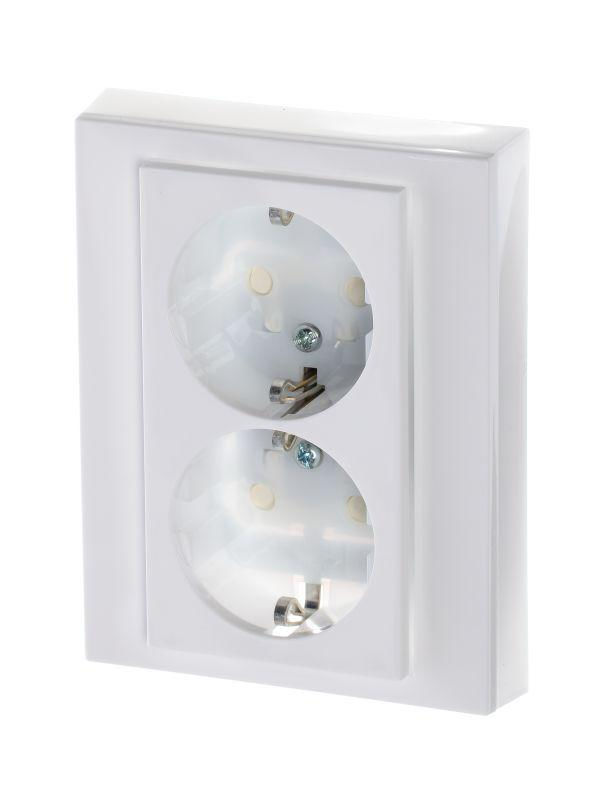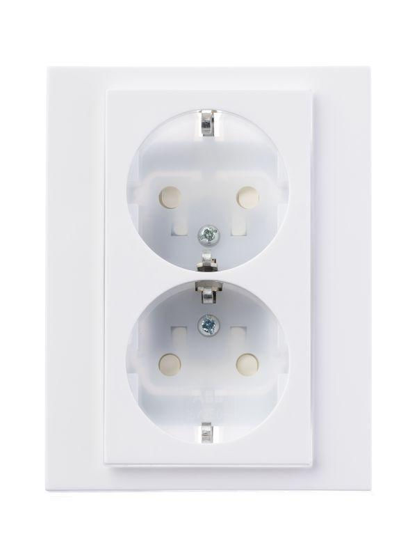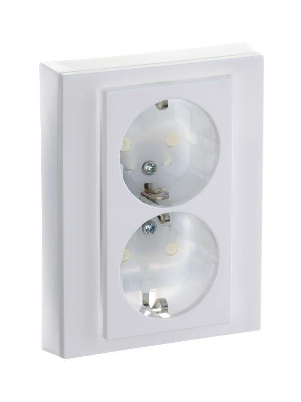 Розетка двойная Levit с заземл. с защ. шторками 16А бел./ледяной ABB 2CHH223457C6001