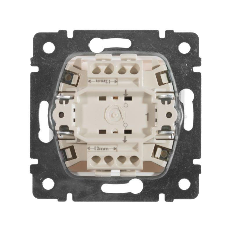 Представляет собой механизм выключателя с одной клавишей. Белого цвета. Изготовлен из пластика. Монтируется под штукатурку.