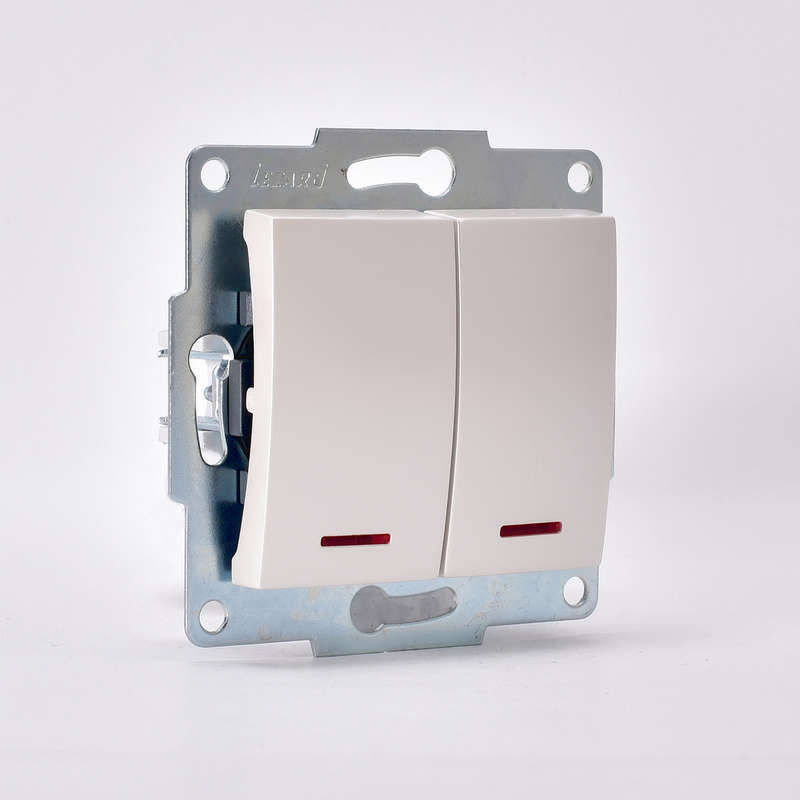 Механизм выключателя 2-кл. 1п СП Karina 10А IP20 с подсветкой жемчуж./бел. перламутр. LEZARD 707-3088-112