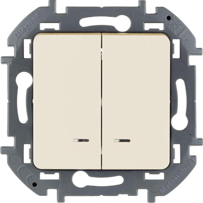 Выключатель 2-кл. Inspiria 10А IP20 250В 10AX с подсветкой/индикацией механизм сл. кость Leg 673631