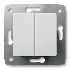 Представляет собой механизм выключателя с двумя клавишами. Белого цвета. Изготовлен из пластика. Монтируется под штукатурку.