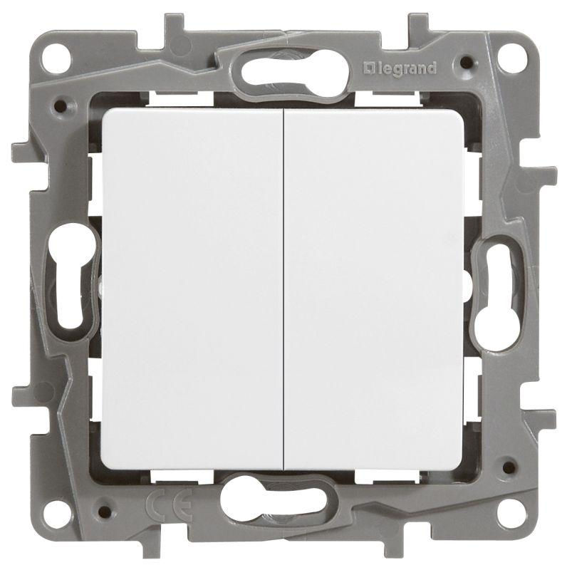 Выключатель 2-кл. СП Etika 10А IP20 250В 10AX с подсветкой/индикацией безвинтов. зажимы механизм бел. Leg 672204