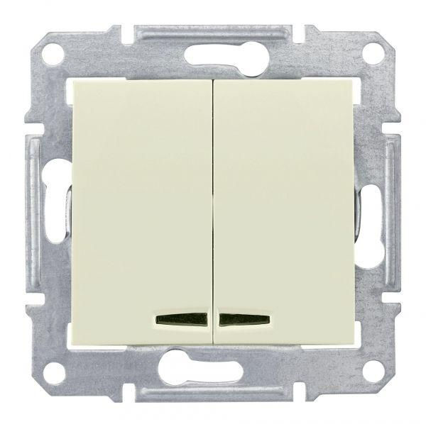 Выключатель 2-кл. СП Sedna 10А IP20 (сх. 5а) 250В с син. подсветкой механизм беж. SchE SDN0300347
