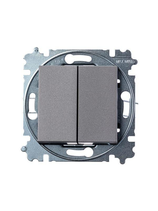 Выключатель 2-кл. СП Levit IP20 сталь/дым. черн. ABB 2CHH590545A6069