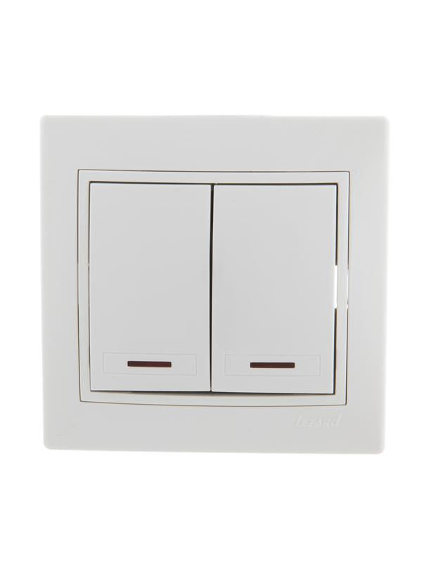 Выключатель двойной однополюсный - это двухпозиционный коммутационный аппарат с подсветкой красного цвета с замыкающими (нормально-разомкнутыми) контактами, без заземления. Подсоединение на винтах.