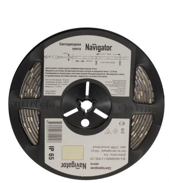 Лента светодиодная 71 427 NLS-5050WW60-14.4 IP65 12B R5 14.4Вт/м (уп.5м) Navigator 71427