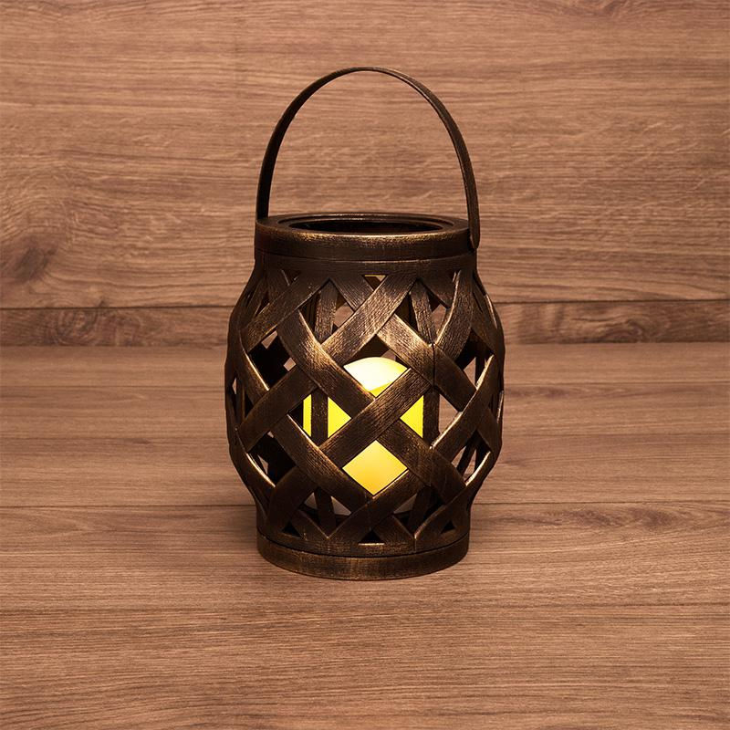 Фонарь декоративный со свечкой плетеный корпус бронза 14х14х16.5см тепл. бел. NEON-NIGHT 513-055