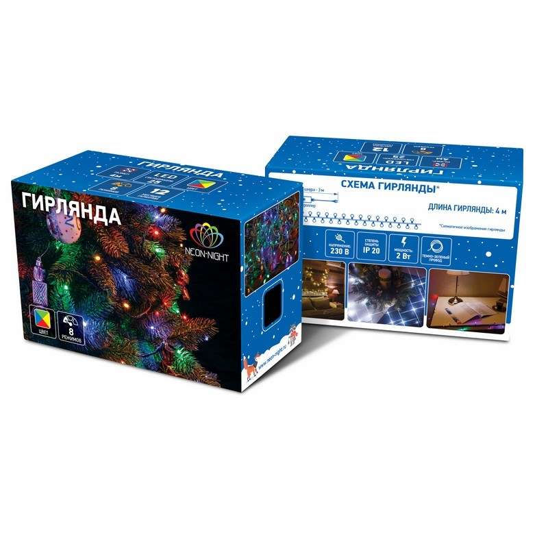 Гирлянда светодиодная ''Твинкл Лайт'' 15м 120LED бел. 10Вт 230В IP20 с контроллером 8 режимов провод ПВХ темн. зел. Neon-Night 303-055