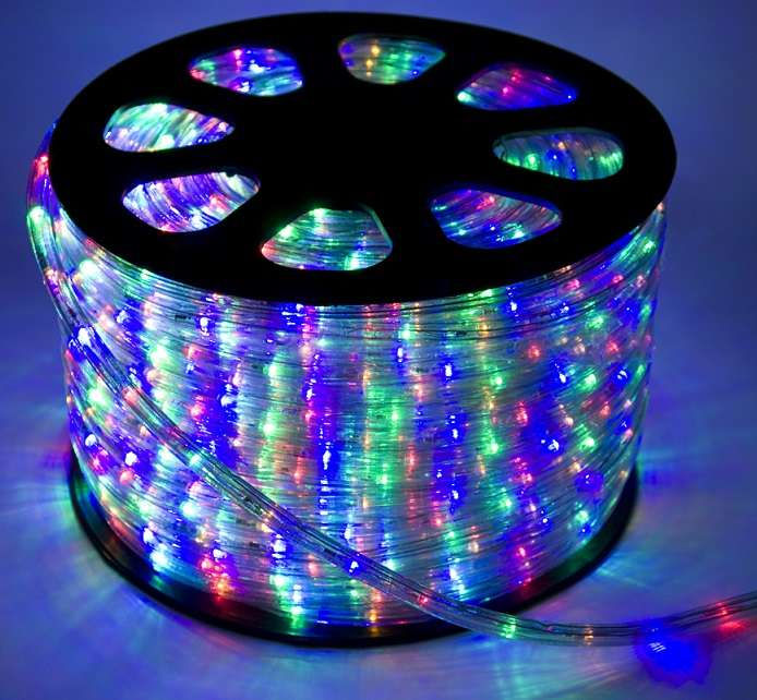 Шнур светодиодный Дюралайт 2W 1.8Вт/м IP65 220В d13мм постоянное свечение мультиколор (уп.100м) КОСМОС KOC-DL-2W13-RGB
