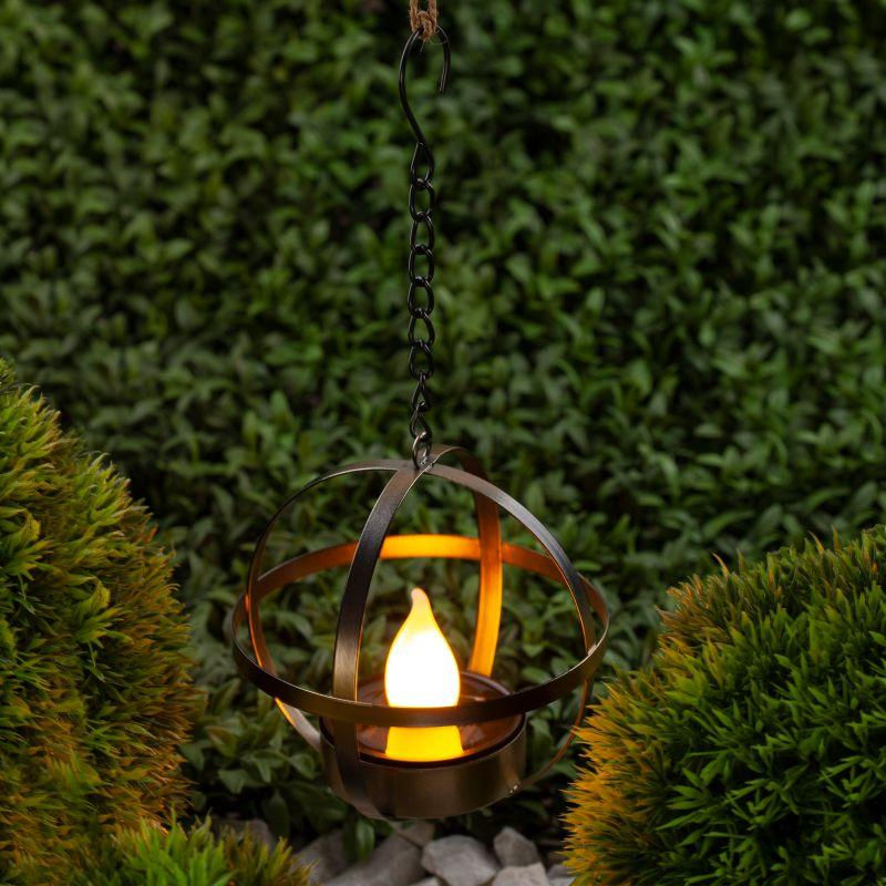 Подвесной садовый светильник ERASFM-02 Лофт придаст Вашей дачной территории немного таинственности. Небольшие внешние габариты позволят Вам разместить светильник на фасаде или карнизе дома, слегка подсветить тропинку, ворота или террасу. Металлический светильник имеет большой крючок для подвешивания. LED светильник функционирует на солнечной батарее. Такой способ получения энергии является самым экологичным, энергоемким, а также бесшумным. Питание происходит во включенном режиме, днем. Самое интересное начинается после захода солнца: декоративная свеча начинает светиться теплым желты светом, создавая эффект пламени. Обстановка на участке приобретет немного таинственный характер за счет необычного решетчатого корпуса. Солнечная батарея предусматривает 8 часов непрерывной работы. Высокая степень защиты от пыли и влаги позволяет оставлять светильник на улице даже во время дождя. Обращаем Ваше внимание, что перед использованием фигурки её необходимо включить и зарядить. Светильник заряжается в течение всего светового дня. Подвесной светильник для сада от компании ЭРА чудесный вариант для стилизации Вашей территории.