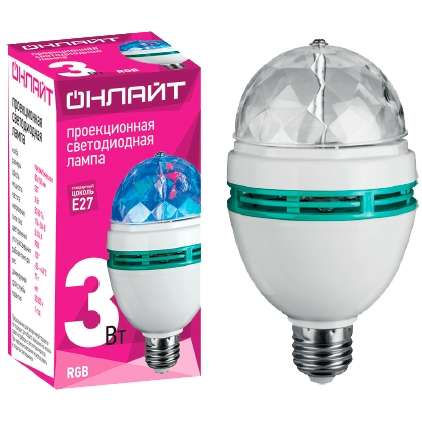 Лампа светодиодная 61 120 OLL-DISCO-3-230-RGB-E27 3Вт ОНЛАЙТ 61120