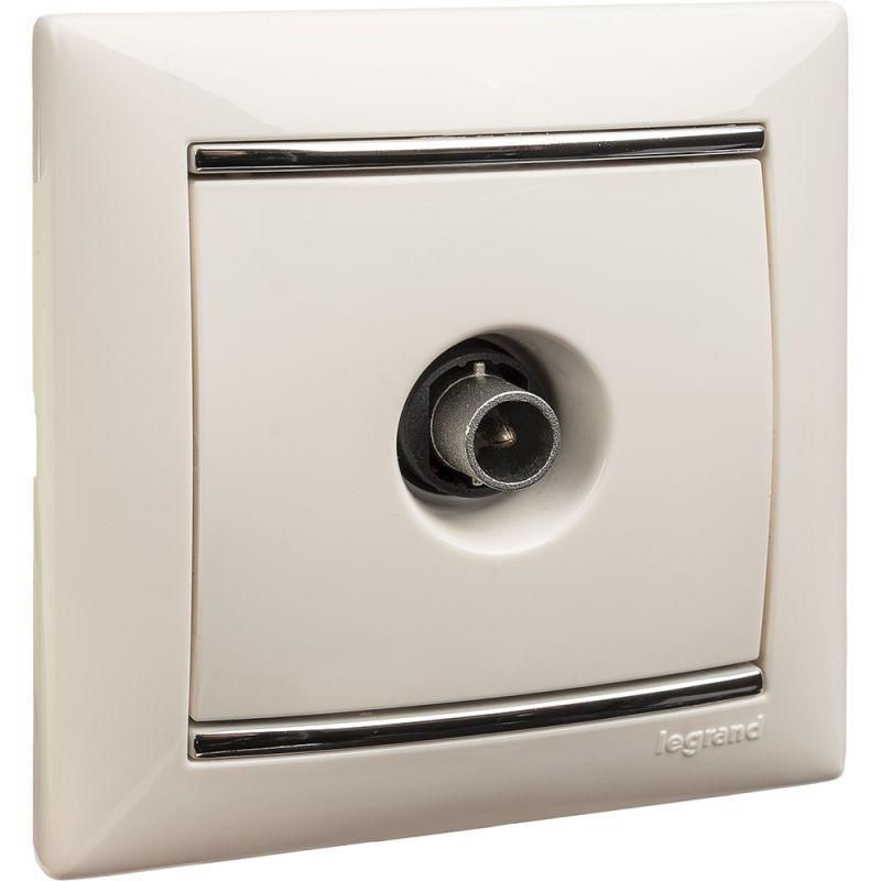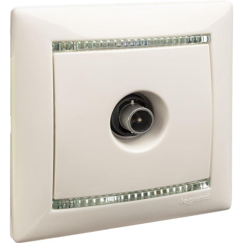 Представляет собой одноместный модуль ТV-розетки с одинарным антенным разъемом для подключения, с крышкой. Изготовлен из пластика, белого цвета. Применяется в диапазоне 4-2400 МГц. Кабель монтируется путем введения штекера в паз.