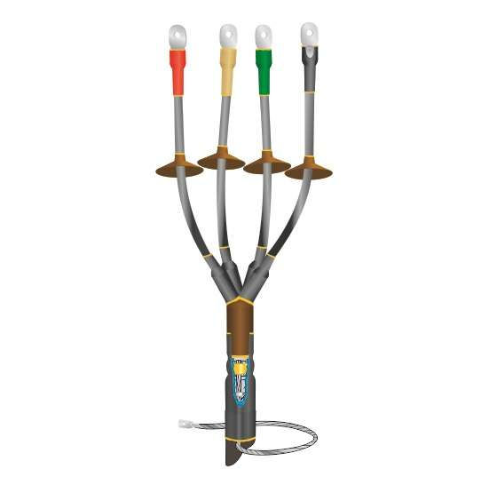 МУФТА КОНЦЕВАЯ ТЕРМОУСАЖИВАЕМАЯ МАРКИ 1КНТпН-4х(70-120) С НАКОНЕЧНИКАМИ БОЛТОВЫМИ НАРУЖНОЙ УСТАНОВКИ предназначена для оконцевания 4-х жильных силовых кабелей сечением 70, 95, 120 кв.мм с бумажной или с пластмассовой изоляцией, с броней или без брони, на напряжение до 1 кВ включительно. Универсальна в применении.