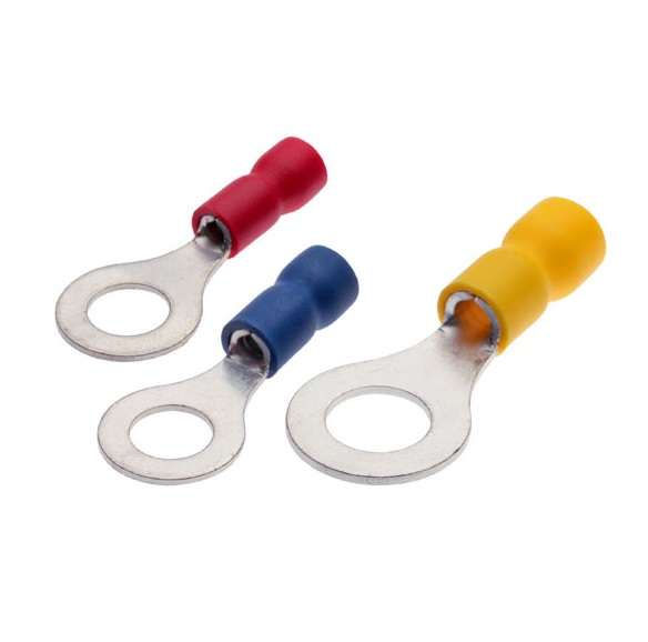 Наконечник кольцевой НКИ 6.0-8 КВТ 47483 предназначен для монтажа гибких многопроволочных жил сечением до 8 кв.мм, на напряжение до 690 В.