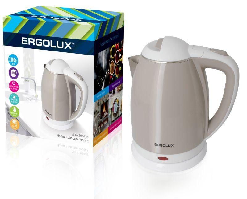 Чайник ELX-KS02-C18 нерж.сталь/пластик 1.8л 160-250В 1500-2300Вт бежево-бел. Ergolux 13121