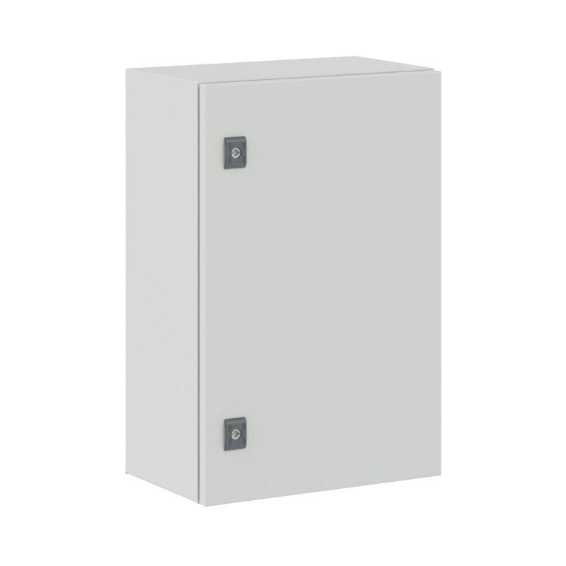 Сварные корпуса ST входят в линейку "RAM block". Эту серию отличает высокая ударопрочность (IK 10) и устойчивость к механическим повреждениям. Навесные корпуса ST со сплошной дверью используются для систем автоматизации технологических процессов. Корпуса обеспечивают размещенным внутри устройствам надежную защиту. Двери таких корпусов изготавливаются из металла толщиной 1,5 мм, а сам каркас – из металла толщиной 1,2 мм. На внутреннюю сторону двери наносится покрытие из вспененного полиуретана, который повышает качество герметизации. Загиб кромки корпуса предотвращает попадание во внутреннее пространство шкафа влаги и мусора, а производственные отверстия имеют специальные заглушки, благодаря чему достигается степень пыле- и влагозащиты корпуса – IP 65/IP 66. Трехступенчатая автоматизированная система окрашивания обеспечивает корпусам прочное покрытие, устойчивое к сколам и царапинам. По умолчанию в двери устанавливается замок под ключ с двойной бородкой 3 мм. Шкафы ST от ДКС отличаются сейсмоустойчивостью и вибростойкостью. Корпуса могут использоваться совместно с аксессуарами CE. Маркированная монтажная плата из оцинкованной стали толщиной 1,8 мм позволяет размещать внутри корпусов даже тяжелое оборудование. Габариты корпуса: высота - 600 мм, ширина - 400 мм, глубина - 250 мм.