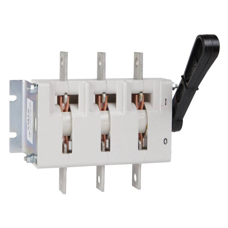 Выключатель-разъединитель 3 полюсный на номинальный ток 400 А, в котором установлена несъемная рукоятка.
