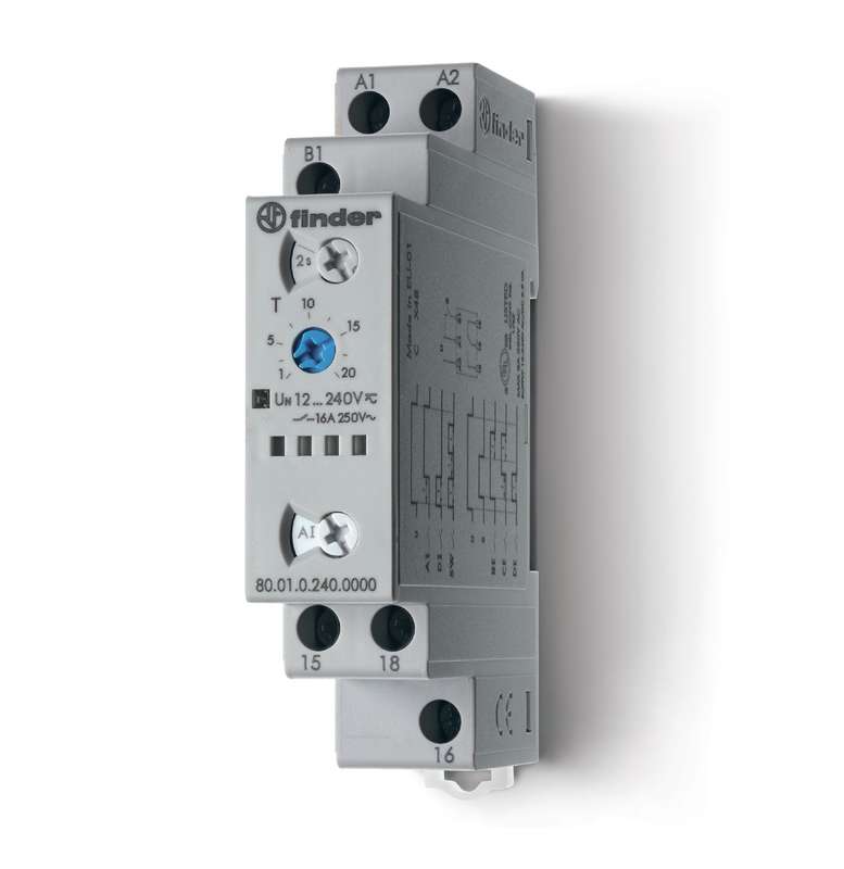 Таймер модульный мультифункциональный (AI DI SW BE CE DE) 12…240В AC/DC 1CO 16А 17.5мм регулировка времени 0.1с…24ч IP20 FINDER 800102400000