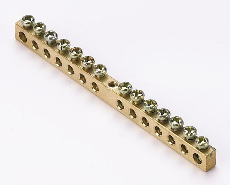 Шина нулевая серии ШН-101 DEKraft; исполнение – колодка на 14 зажимов; сечение - 6х9 мм; длина – 109 мм; максимальный ток – 100 А; материал – высококачественная электротехническая бронза; крепёж - по центру; кол-во в упаковке – 10 шт. Нулевая шина позволяет создать сразу несколько точек подключения нагрузок от общего ввода к нулевому проводнику, обеспечить неразрывность цепи на участке от заземления до конкретной нагрузки, а также выполнить разделение защитного и рабочего нулевых проводников.