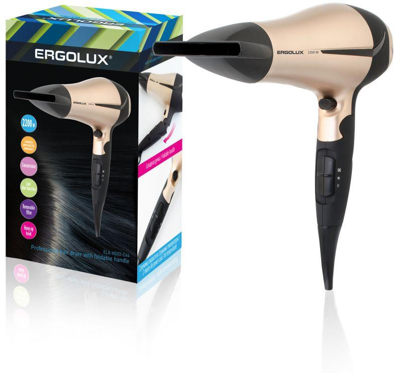 Фен ELX-HD03-C64 со складной ручкой 2200Вт 220-240В черн./зол. Ergolux 13131