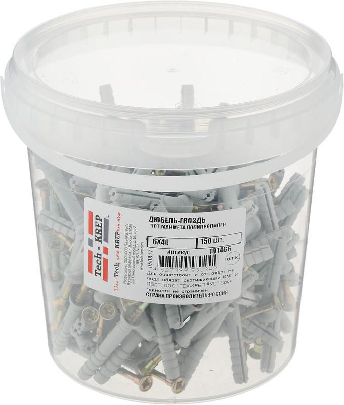 Дюбель-гвоздь 6х40 с потайной манжетой полипропилен (уп.150шт) ведро Tech-Krep 101466