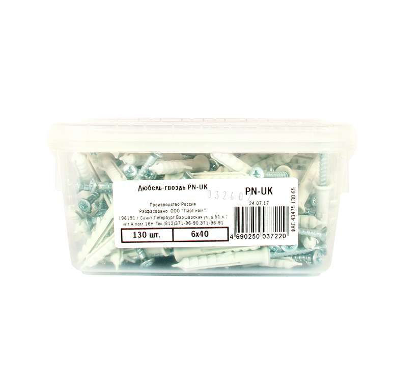 Дюбель-гвоздь PN-UK 6х40 контейнер нейлон (уп.130шт) Партнер ФАС4347513065 – набор крепежный.