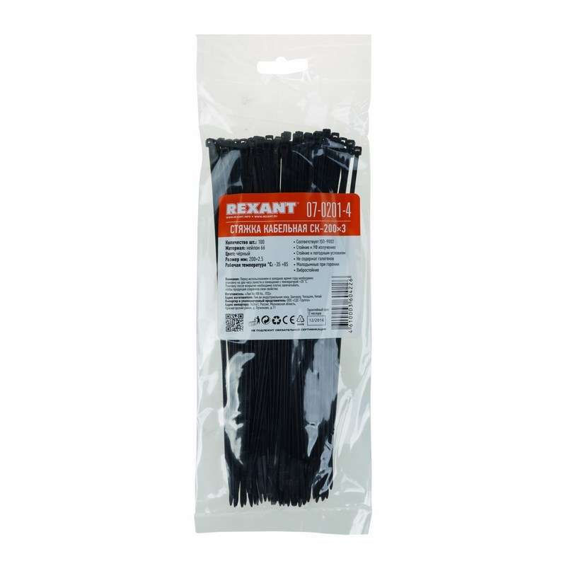 Хомут кабельный 2.5х200 нейл. черн. (уп.100шт) Rexant 07-0201-4