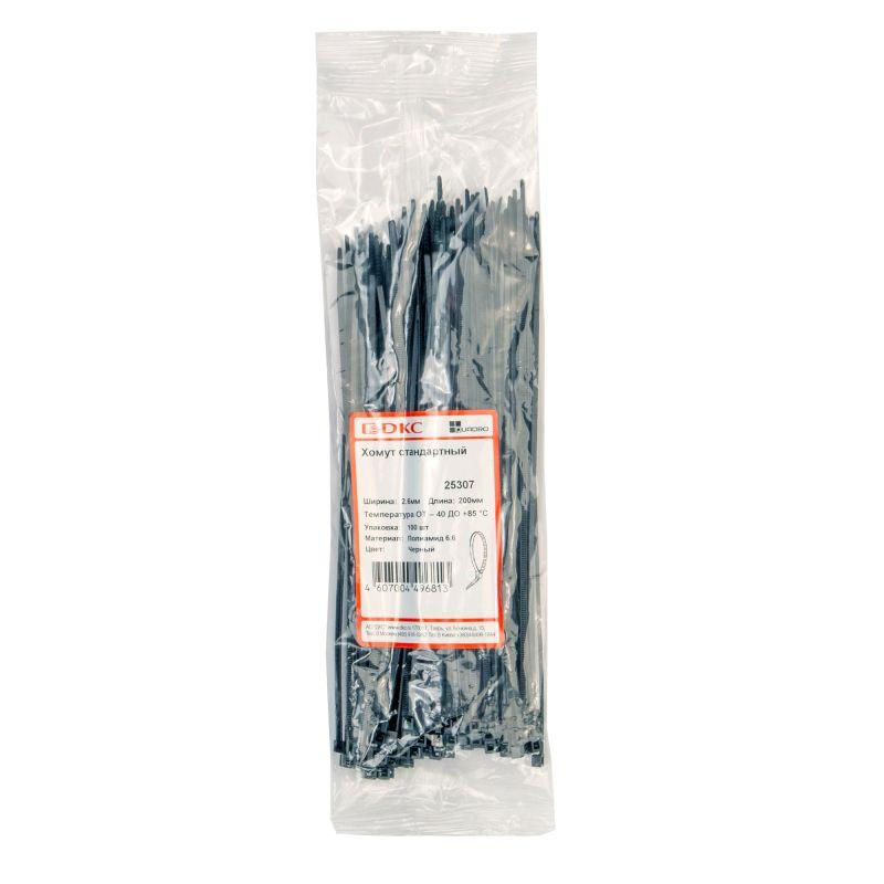 Хомут кабельный 2.6х200 полиамид черн. (уп.100шт) DKC 25307