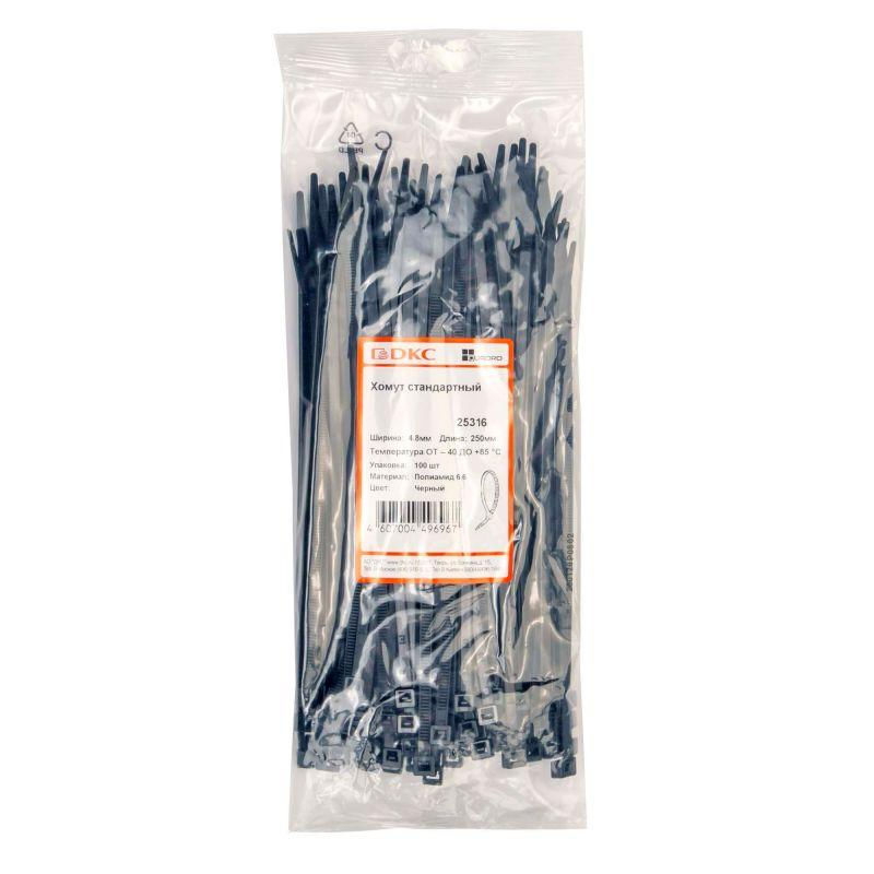 Хомут кабельный 4.8х250 полиамид черн. (уп.100шт) DKC 25316