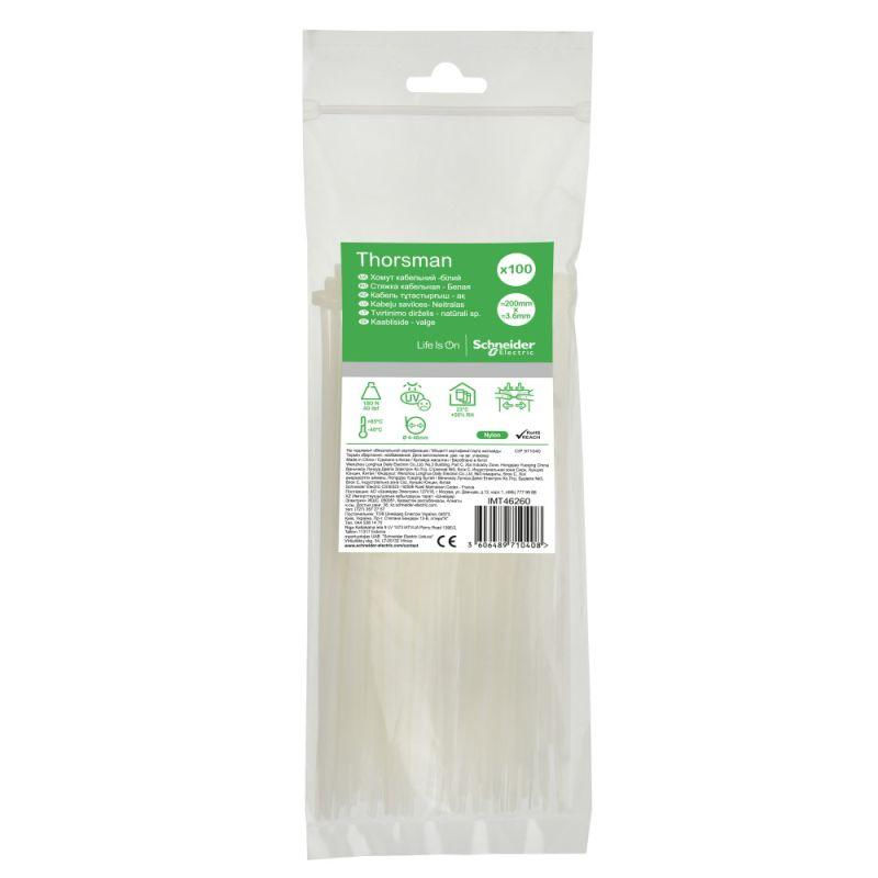 Стяжка кабельная 200х3.6 бел. (уп.100шт) SchE IMT46260